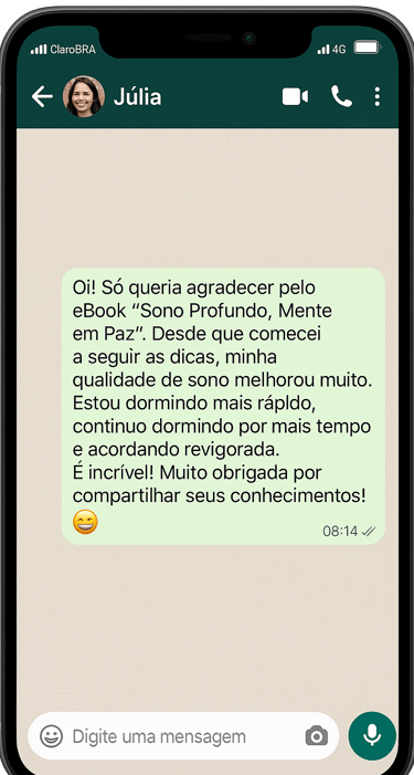 Se, por qualquer motivo, dentro de 7 dias você sentir que o conteúdo do e-book Sono Profundo, Mente em Paz não atendeu às suas expectativas, devolveremos 100% do seu investimento — sem burocracia.
